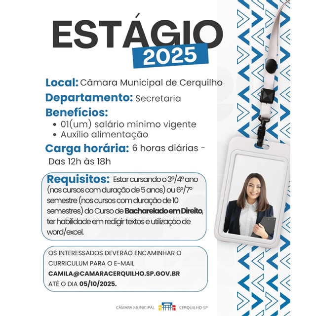 📧 Envie seu currículo até 05/10/2025 para: camila@camaracerquilho.sp.gov.br