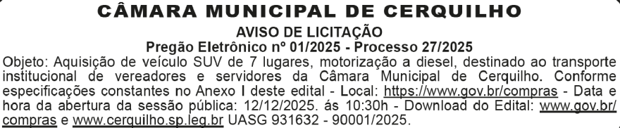 AVISO DE LICITAÇÃO: Pregão Eletrônico nº 01/2025