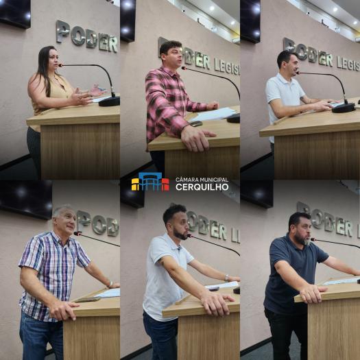 Fizeram uso da Tribuna os vereadores: Antônio Carlos (Tonico), Cleiton da Luz Scudeler, Cleuza da Silva Belino, Danilo Posses, Edilene Bellucci, Felipe Cesar de Paula, Mauro Frare, Protetora Thamires Anchieta, Professor Vinícios Morás, Simone Feher Bellucci, Silvio Santos Mello e Vitor Mazzucatto.