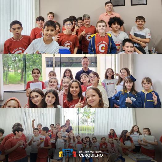 Na manhã desta quinta-feira, 09 de abril, os alunos do 5º ano do Ensino Fundamental do Colégio Gradual visitaram a Câmara Municipal de Cerquilho, acompanhados pelas professoras Martha Alexandre e Milena Pontas, além da Coordenadora Cristiane Amaral.